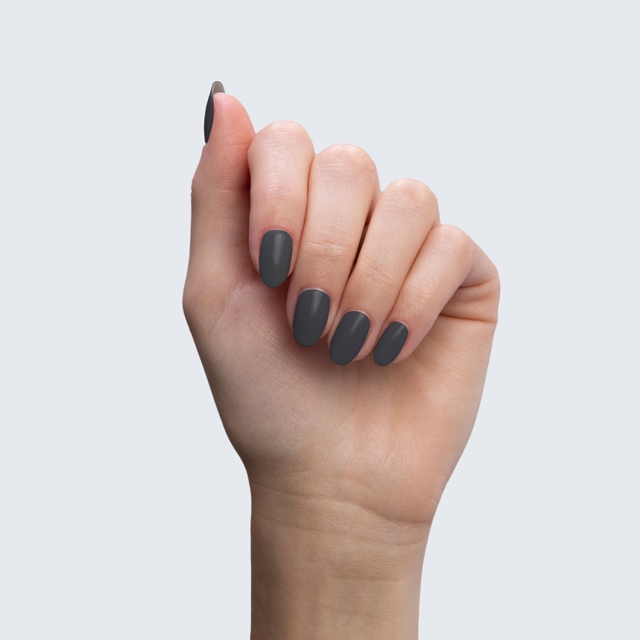 Charcoal grey. Dark. Opaque. Warm undertone.